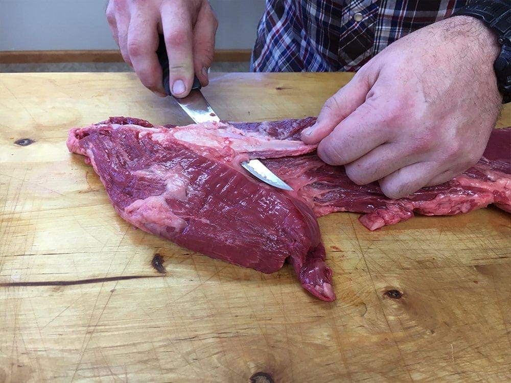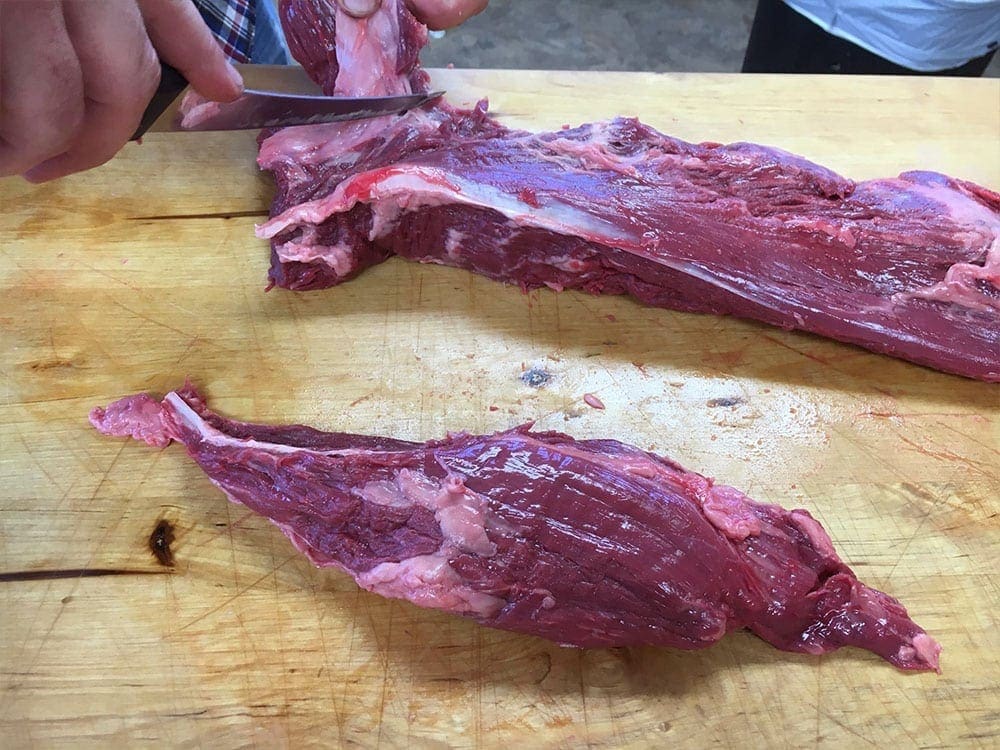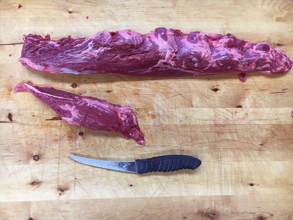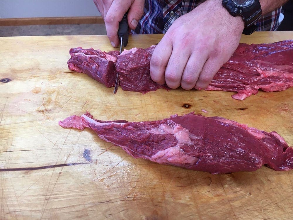 “Square up” the head end of the main part of the PSMO, from there, decide how thick you want your Filet – 1.75″ – 2″ thick is a nice rule of thumb.